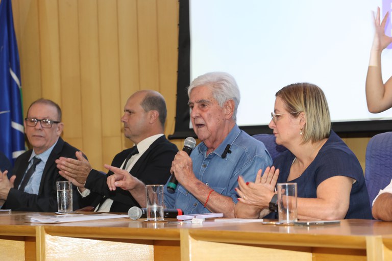 O presidente da Câmara Municipal de Uberlândia, vereador Zezinho Mendonça (PP), acompanhado dos vereadores da base aliada ao Executivo, esteve nesta sexta-feira no auditório Cícero Diniz do Centro Administrativo, quando o prefeito Odelmo Leão apresentou o maior pacote de obras e ações da história de Uberlândia. O programa “É pra você. Uberlândia sempre à frente” é uma iniciativa que vai contemplar construções, reformas e melhorias a serem concretizadas pela Prefeitura de Uberlândia até o fim de 2024, projetos esses que passarão pela Câmara de Vereadores para discussão, votação e aprovação. O valor do investimento é de mais de R$ 400 milhões.